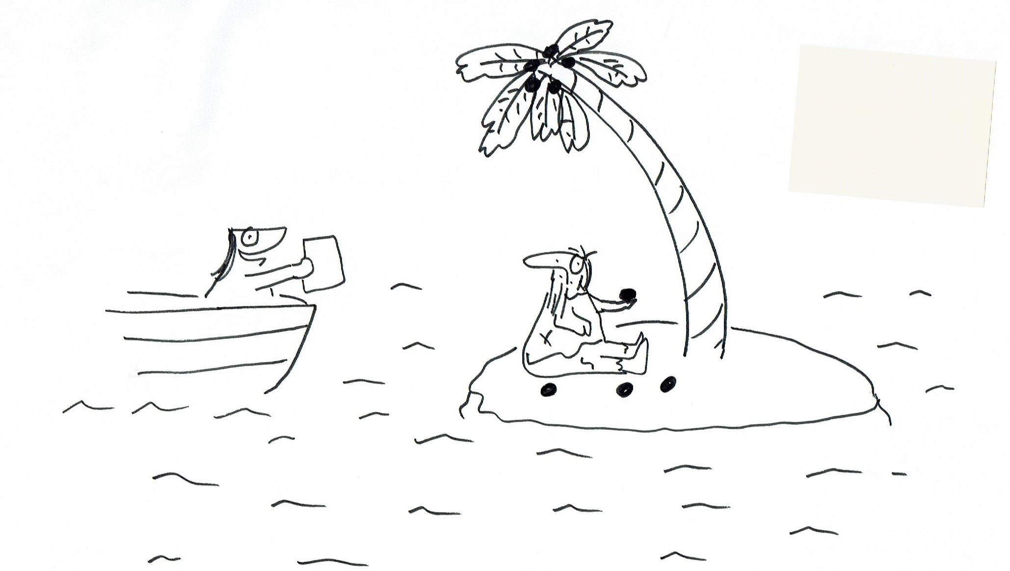 “Oh, I’m not rescuing you. I just want you to have my flyer on ‘Making Crafts with Coconut Shells.’”